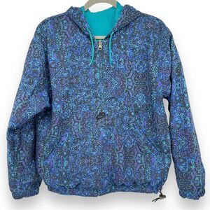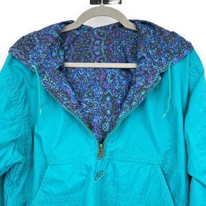 Vintage 90s Nike Reversible Anorak Windbreaker Jacket Teal Blue 1/4 Zip Womens S