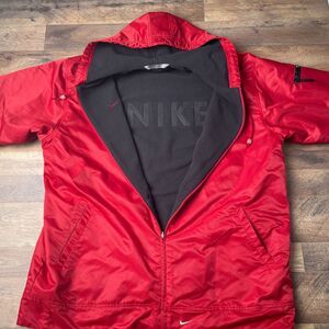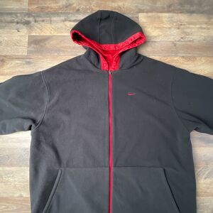 Vintage 90s Nike Reversible Jacket Mens XL Black Red Fleece Athletic Hooded 1147