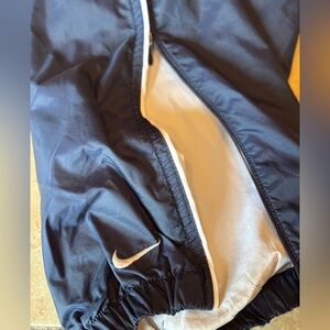 Vintage 90s Nike Swoosh Nylon Track Pants with Leg Zipper Blue with White Stripe