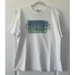 Vintage 90s Nike T Shirt Mens Large White Swoosh Teal Spell Out Nike Made In USA