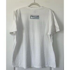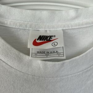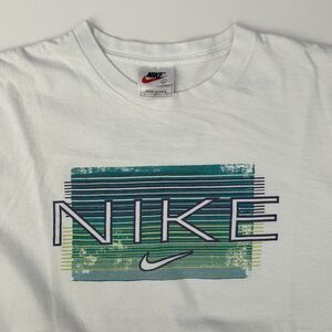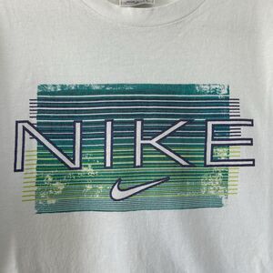Vintage 90s Nike T Shirt Mens Large White Swoosh Teal Spell Out Nike Made In USA Cotton.