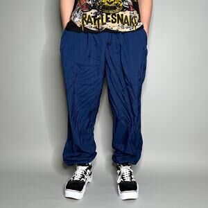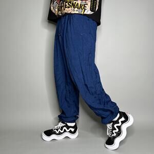 Vintage 90s Nike Track Pants Mens XL Navy Blue Nylon Joggers Subtle Swoosh