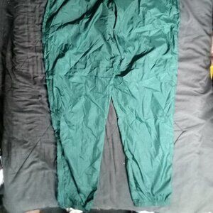 Vintage 90s Nike Wind Pants Joggers Trainers Green - Zippers At Ankles, Side Pockets - Size XX-Large, Measures Adjustable Drawstring Elastic Waist(Flat)=16.5" Inseam=33" Front Rise=15.5" - Excellent Condition, No Flaws - Green Color Pants With Gold Swoosh