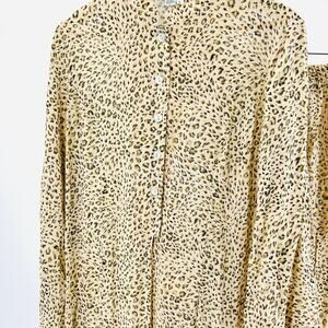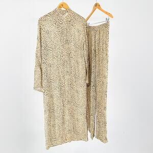 xcellent vintage condition. Lightweight, semi-sheer matching set with a button-front tunic top and pull-on elastic waist pants. Bold leopard print. Made in U.S.A. 100% Rayon.
