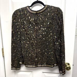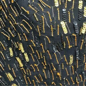 Vintage 90s Niteline Sequin Blouse, Black and gold, beads, zip up back, Size M