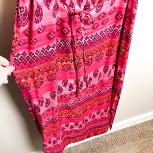 Vintage 90s No Boundaries Pink Tie Waist Colorful Aztec Printed Maxi Dress small