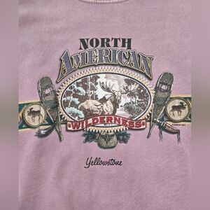 Vintage 90's Unisex North American Yellowstone Moose and Aztec Print Crewneck Sweatshirt in Light Purple. Size Large. 100% Cotton