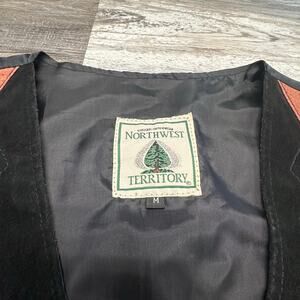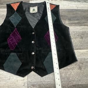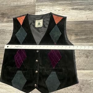 Vintage 90s Northwest Territory Black Argyle Mens M Suede Leather Vest Western