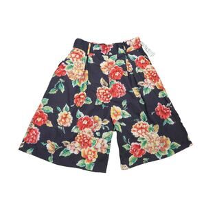 Vintage 90s Nouveau black and red floral print high rise longline shorts
