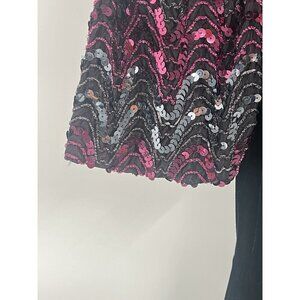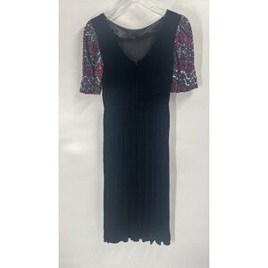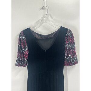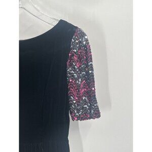 Vintage 90s Nuit Black Velvet Midi Dress Sequins Short Sleeves Sz 10