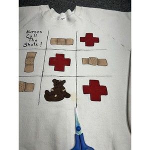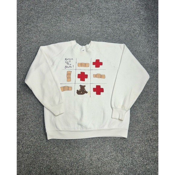 Vintage 90s Nurse Parody White Crewneck Sweatshirt Women's Size Large USA Made.