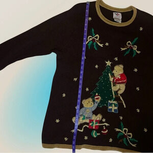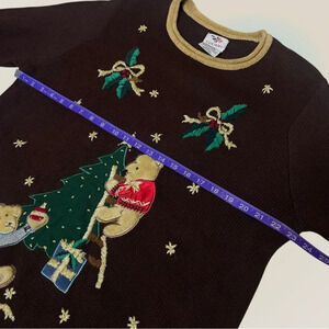 Vintage 90s Nutcracker Embroidered Christmas Tree Bears Mistletoe Sweater