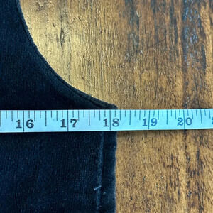 Nice, preowned vintage condition with no flaws to note. Percent cotton black, velvet with embroidered nutcrackers and snowflakes across the front. Four button closure, and tie in the back.