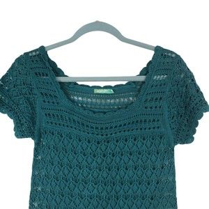 Vintage 90s Old Navy Crochet Mini Dress/Tunic/Swimsuit Cover Teal SZ M Very Soft