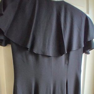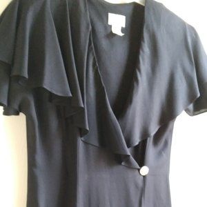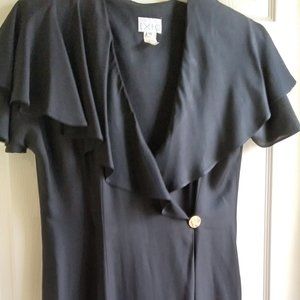 Vintage 90s One Piece Romper Outfit Size 14 EXPO Pant Suit Black Excellent Condition, shoulder pads, mock wrap front, attached round cape, 80% Acetate & 20% Nylon, Dry Clean Only