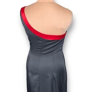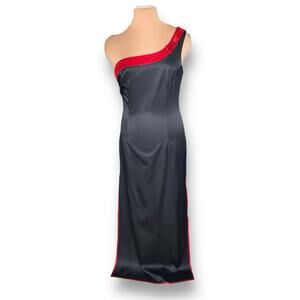 Vintage 90s One Shoulder Black Red Gown Made in USA Bow Detail Column Formal