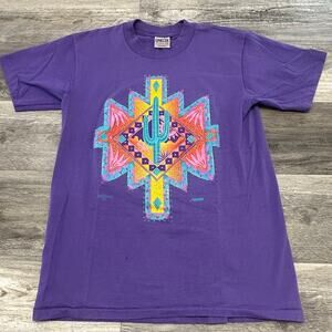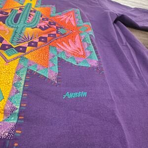 Vintage 90s Oneita Purple Men L Cactus Lizard Arizona Tribal Austin T-Shirt USA