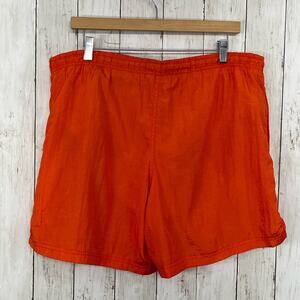 Vintage 90s Orange Nylon High Rise Drawstring Pockets Swim Athletic Shorts Large