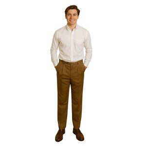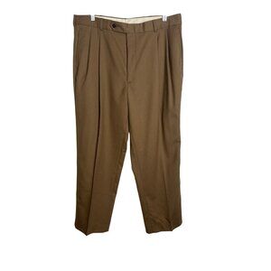 Vintage 90s Oscar de la Renta Men's Wool Dress Pants Brown Pleated Trousers 36R