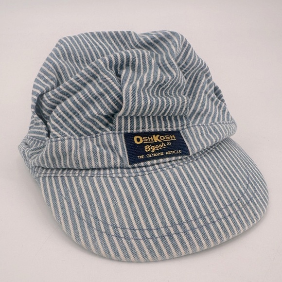 Vintage 90s Oshkosh Railroad Stripe Baby Toddler Hat FLAWS