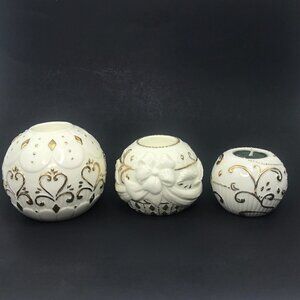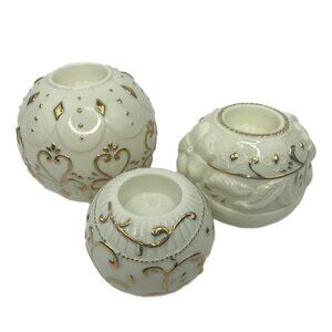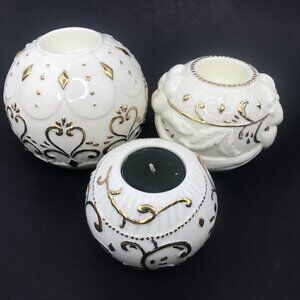 Vintage 1997 Lot of 3 Otagiri Enesco Round Porcelain Tea Light Candle Holders