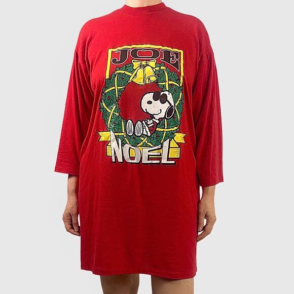 🎄Vintage 90s Oversized Peanuts Snoopy Joe Cool Christmas Sleep Shirt