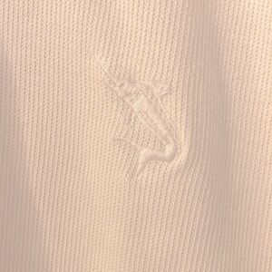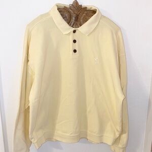 Vintage 90s Original Island Sport 100% Cotton Think Heavyweight Pastel Yellow Collared Long Sleeve Knit Embroidered Swordfish Logo Polo Shirt Size XL
