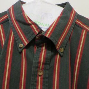 Vintage 90's Oxford Style Striped Button Shirt - Woods & Gray - Size Large