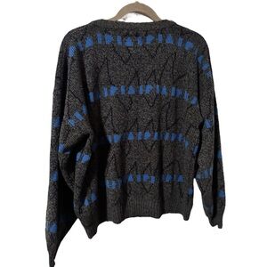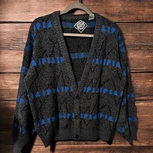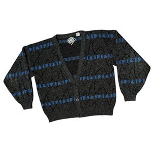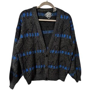 Vintage 90’s PERMIT gray cardigan sweater black blue accent graphics men’s large