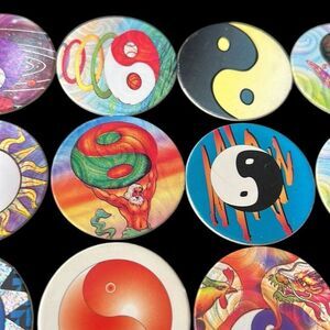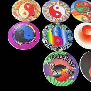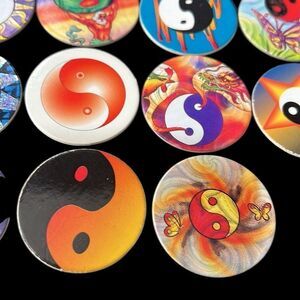 Vintage 90s POGS Lot of 18 Ying Yang Cardboard Milk Bottle Caps Game