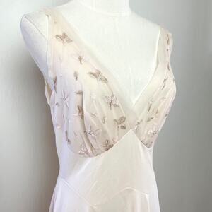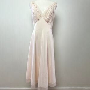 Vintage 90s Pale Pink Floral Embroidered Coquette Cottagecore Slip Dress Sz S/M