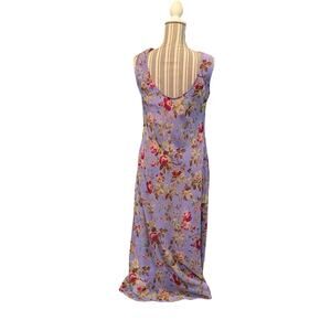 Vintage 90s Paradise NY Purple Beaded Flowy Floral Maxi Sleeveless Dress