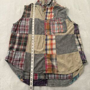 Vintage 90s Paragraff Vest Mens M Plaid Patchwork Flannel Hooded Button Grunge