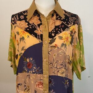 Vintage 90's Patchwork Buttonfront Shirt Size M
