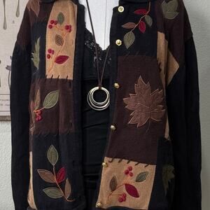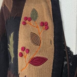 Vintage 90s Patchwork Fall Leaves Berries Cardigan Sweater Fairy Grunge Forest L