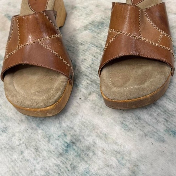 patchwork leather, wooden sole, platform clogs, vintage footwear, 90s style, farmer’s market shoes, rustic chic, chunky heel, earthy tones, boho fashion