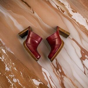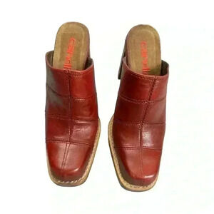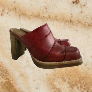 Vintage 90s Leather Mules Candie’s Heels Sz 6.5 Y2K Grunge Retro Reddish Brown