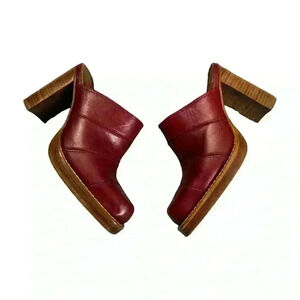 Vintage 90s Patchwork Leather Mules Size 6.5 Red Burgundy Made In Brazil