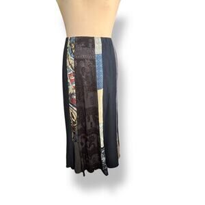 Vintage 90s Patchwork Maxi Skirt by Donna Jessica Boho Ethnic Mixed Print Fabric