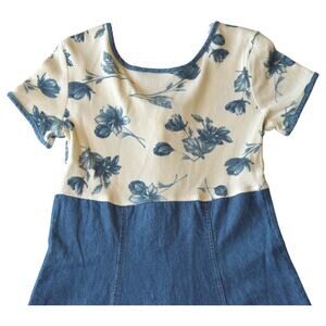 Step into 90s nostalgia with this vintage Peggy Sue maxi dress. Featuring a soft ribbed floral knit top and a flowing denim skirt with button front detail, this dress blends cottagecore charm with casual comfort. Perfect for fall layering or spring strolls.