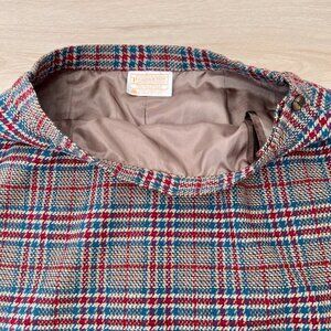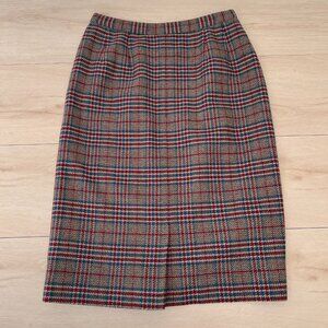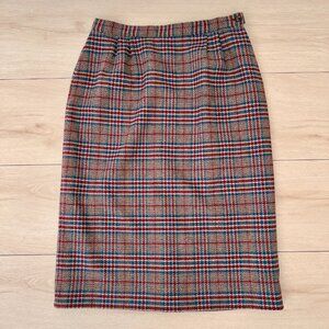 Vintage 90s Pendleton Blue Brown & Red Plaid Wool Tea Length Pencil Skirt Size 8