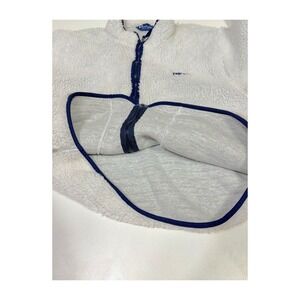 This vintage Penfield jacket is a must-have for any 90s enthusiast. With a deep pile sherpa fleece and solid ivory color, it's perfect for travel, casual wear, or even work. The full zip closure and logo accents add a touch of style, while the polyester insulation keeps you warm on chilly days.