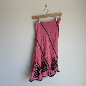 Vintage 90s Persaman New York Pink and Black Embroidered Flowy Skirt Size 6