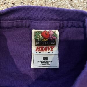 This Vintage 90s Pest Control Purple T-Shirt in size L features a classic crew neck and short sleeves, perfect for year-round wear. The shirt is made of cotton knit fabric with a limited edition graphic print, including an embroidered logo and button accents. With a regular fit and double-sided design, this shirt is a must-have for any 90s enthusiast looking to showcase their love for vintage style and quirky character designs.
