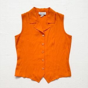 Vintage 90s Petite Impressions Orange Button Front Vest Top, Size 6