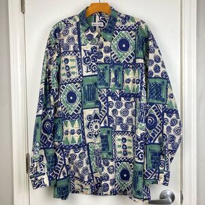 Vintage 90s Pierre Cardin Men’s Geometric Psychedelic Retro Long Sleeve Shirt XL