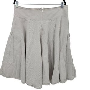 Vintage 90s Pin Striped Cotton Skirt 12 Gray Full Midi Pockets Casual Boho India