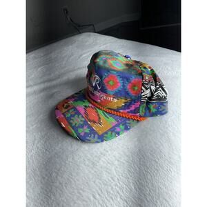 This vintage snapback hat from the 90s is a must-have for any retro fashion enthusiast. The hat features a colorful geometric pattern with a blue character design, making it a perfect accessory for casual occasions. The adjustable strap ensures a comfortable fit, while the multicolor design adds a pop of color to any outfit.