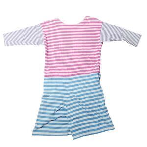 Vintage 90s Pink Blue Striped Preppy Drawstring Waist Romper
