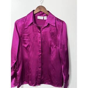 Vintage 90s Pink Silk Long Sleeve Medium Button Up Shirt Blouse Y2K Metallic